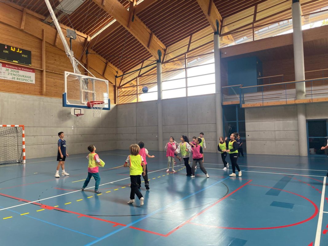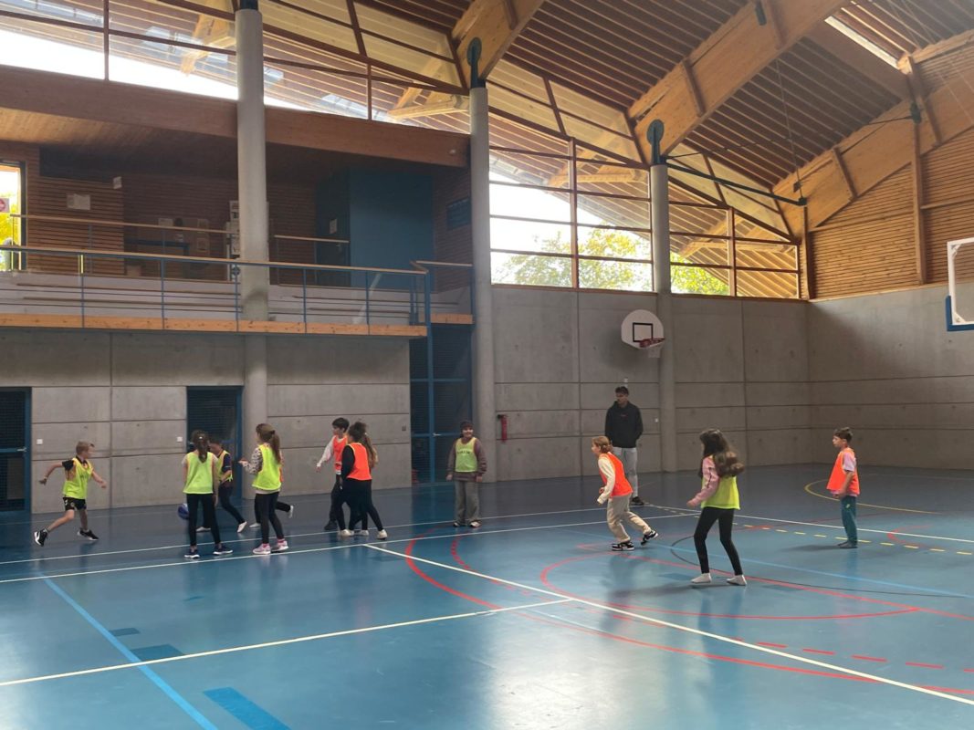 Durant toute la première période, les classes du CP aux CM2 ont eu l’occasion de faire une initiation au basket avec notre intervenant : Titouan.