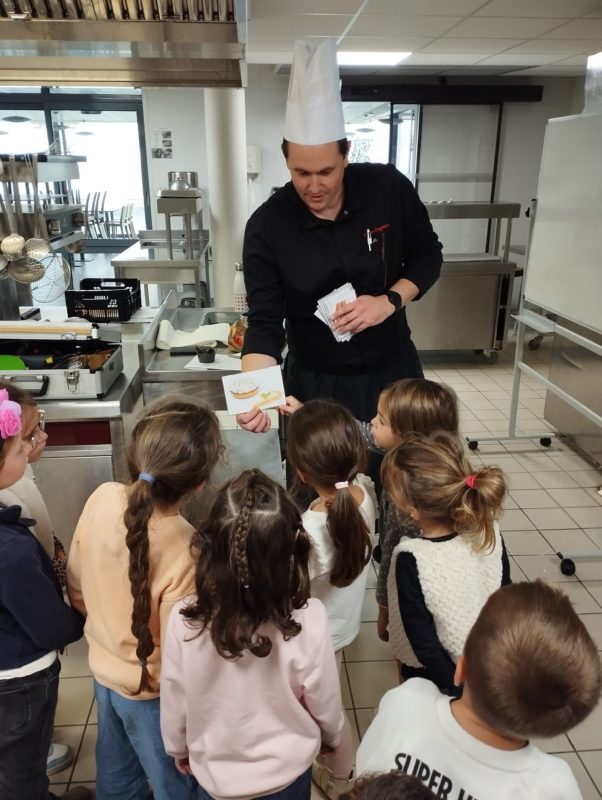 Et pour terminer l’après-midi, les enfants ont découvert les cuisines. Ils ont été accueillis par un chef pâtissier, qui leur a d’abord fait découvrir différentes sortes de desserts.