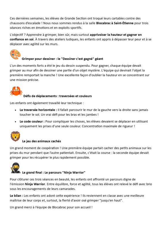 Nos petits grimpeurs à Blocabrac : retour sur nos 3 séances d’escalade !